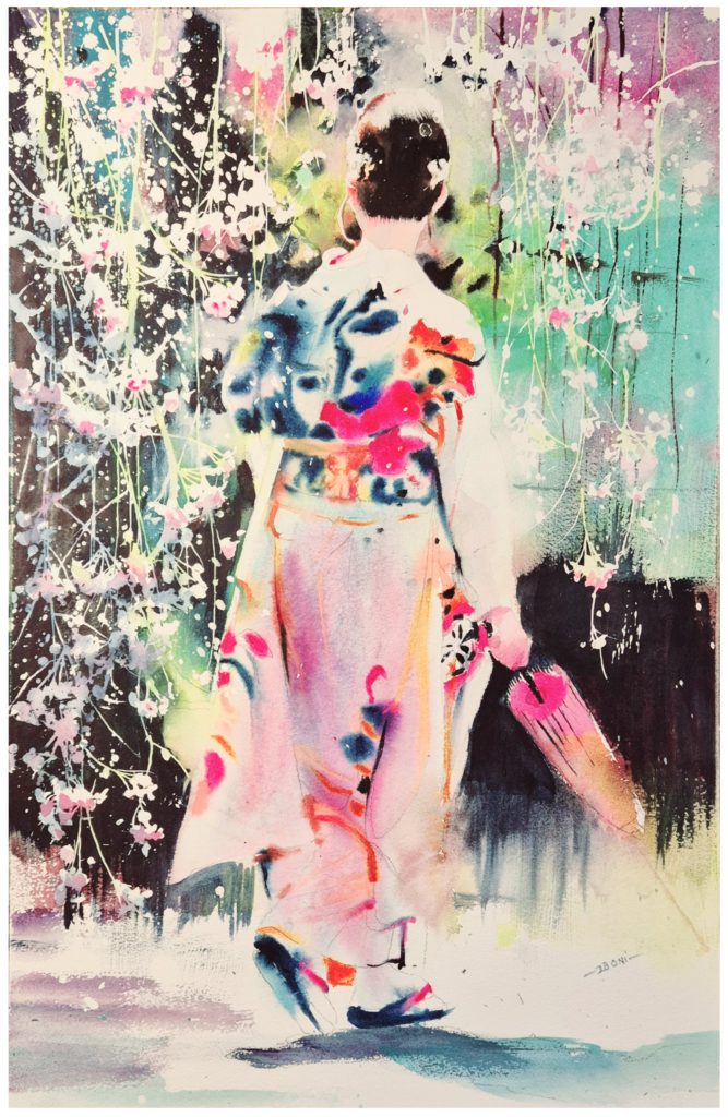 Si vous êtes intéressée de peindre des Geikos japonaises avec la technique du mouillé sur mouillé en aquarelle…